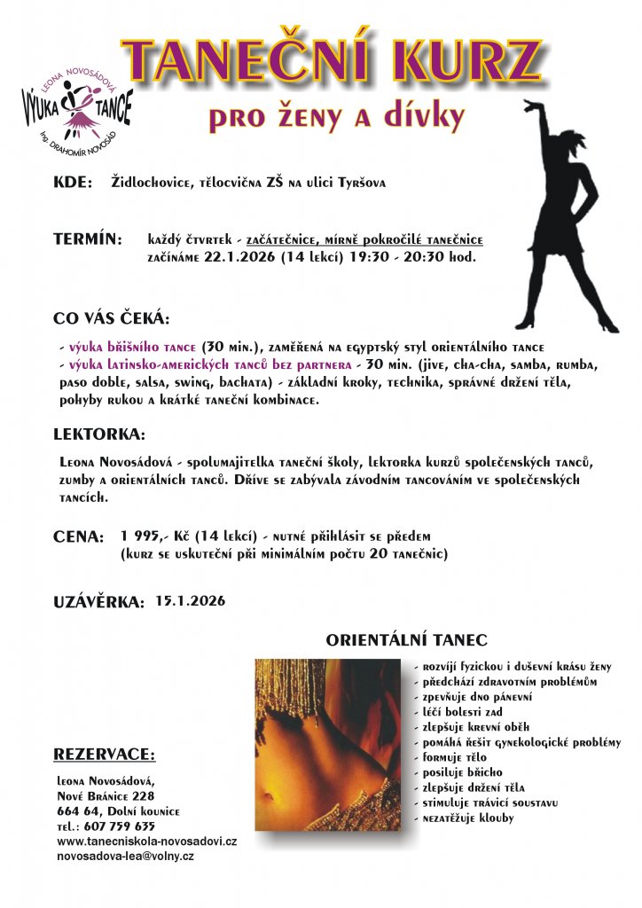 Tanečního kurzu pro ženy v Židlochovicích s výukou latinsko-amerických a orientálních tanců,