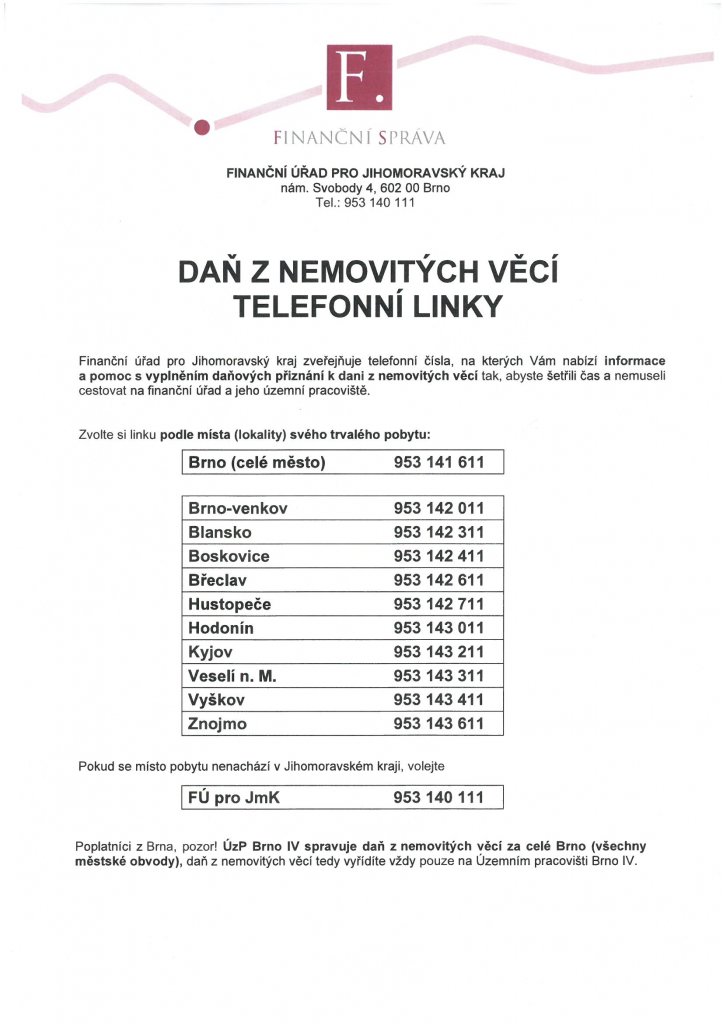 FÚ pro JMK zveřejňuje telefonní čísla, na kterých Vám nabízí informace