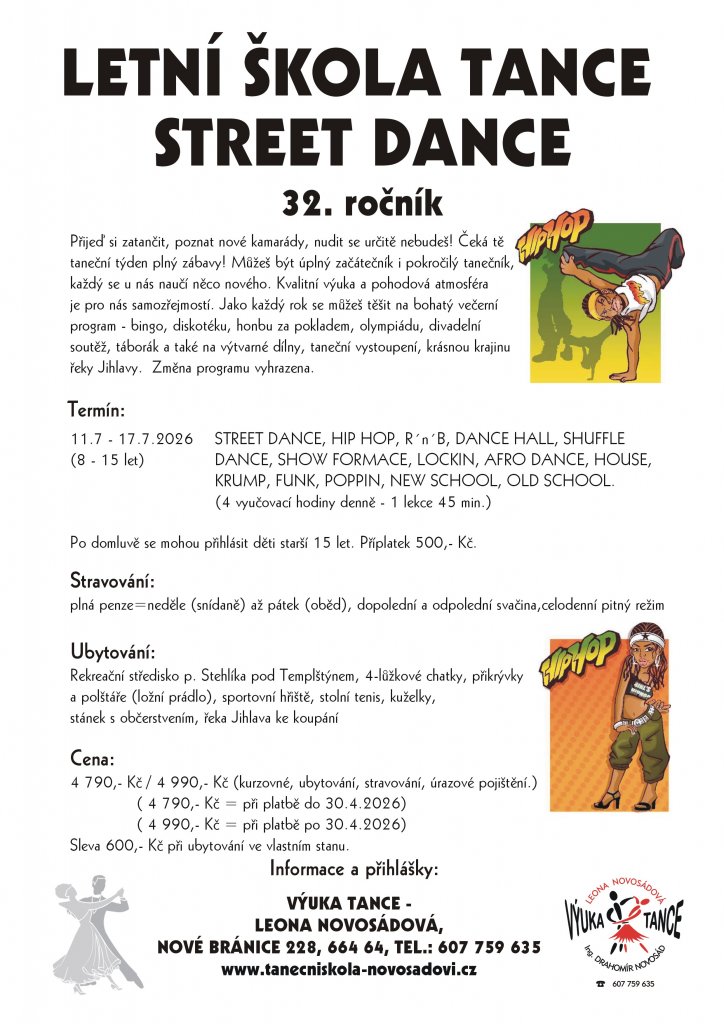 Letní škola tance se uskuteční v termínu od 11. 7. do 17. 7. 2026 pro děti od 8 do 15 let.