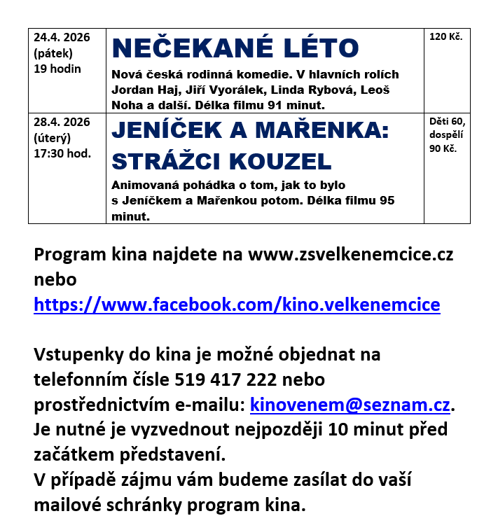V příloze najdete program na březen a duben 2026.