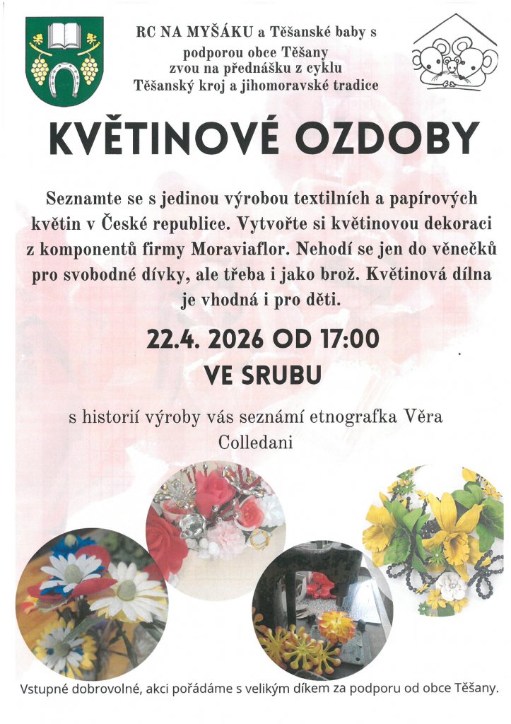 Ve středu 22. 4. 2026 od 17.00 hodin ve srubu v Těšanech.