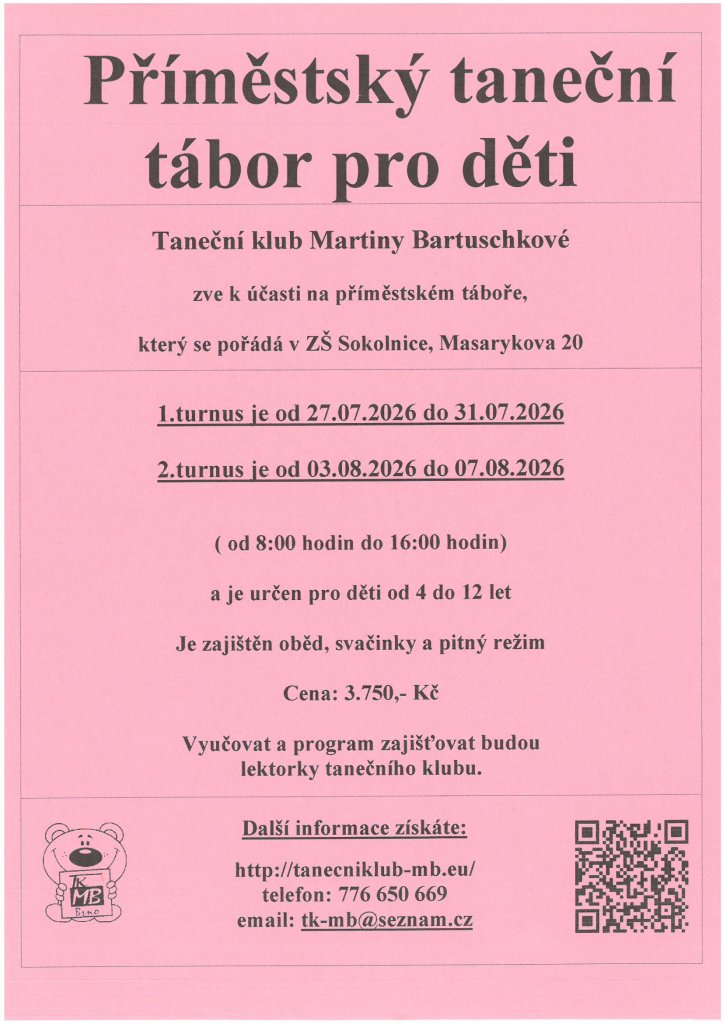 Taneční klub Martiny Bartuschkové pořádá taneční tábor pro děti ve dvou turnusech.