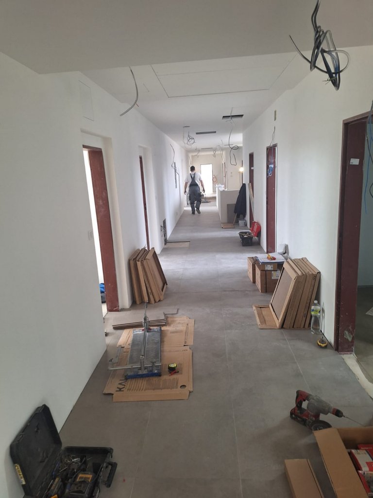 Jak tedy dopadla kolaudace dne 26. března? S jednotlivými aktéry kolaudace jsme byli ve spojení a upozornili je na časové zpoždění (které vycházelo i z výše zmíněných problémů) i stav stavebních prací. Veškeré hrubé stavební práce byly ke dni kolaudace ve škole hotovy, chyběly však podlahové krytiny a dlažby na chodbách. Dohodli jsme tedy s hygienou i hasiči, že přijedou zkontrolovat školu v průběhu dubna (předběžně naplánováno na 14. dubna) a se stavebním úřadem bylo dohodnuto, že se kolaudační řízení nebude ani přerušovat ani zastavovat, neboť je zřejmé, že jsme kousek od dokončení prací.